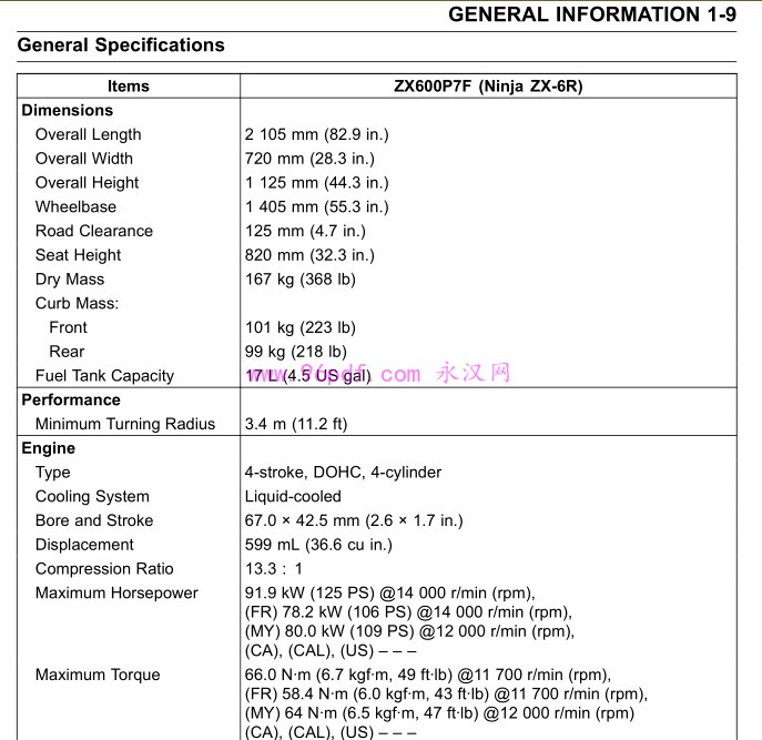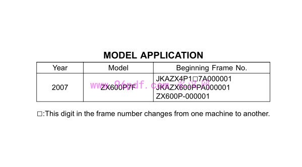 2007 川崎Kawasaki ZX_6R ZX600P7F 维修手册(英文)含扭矩数据